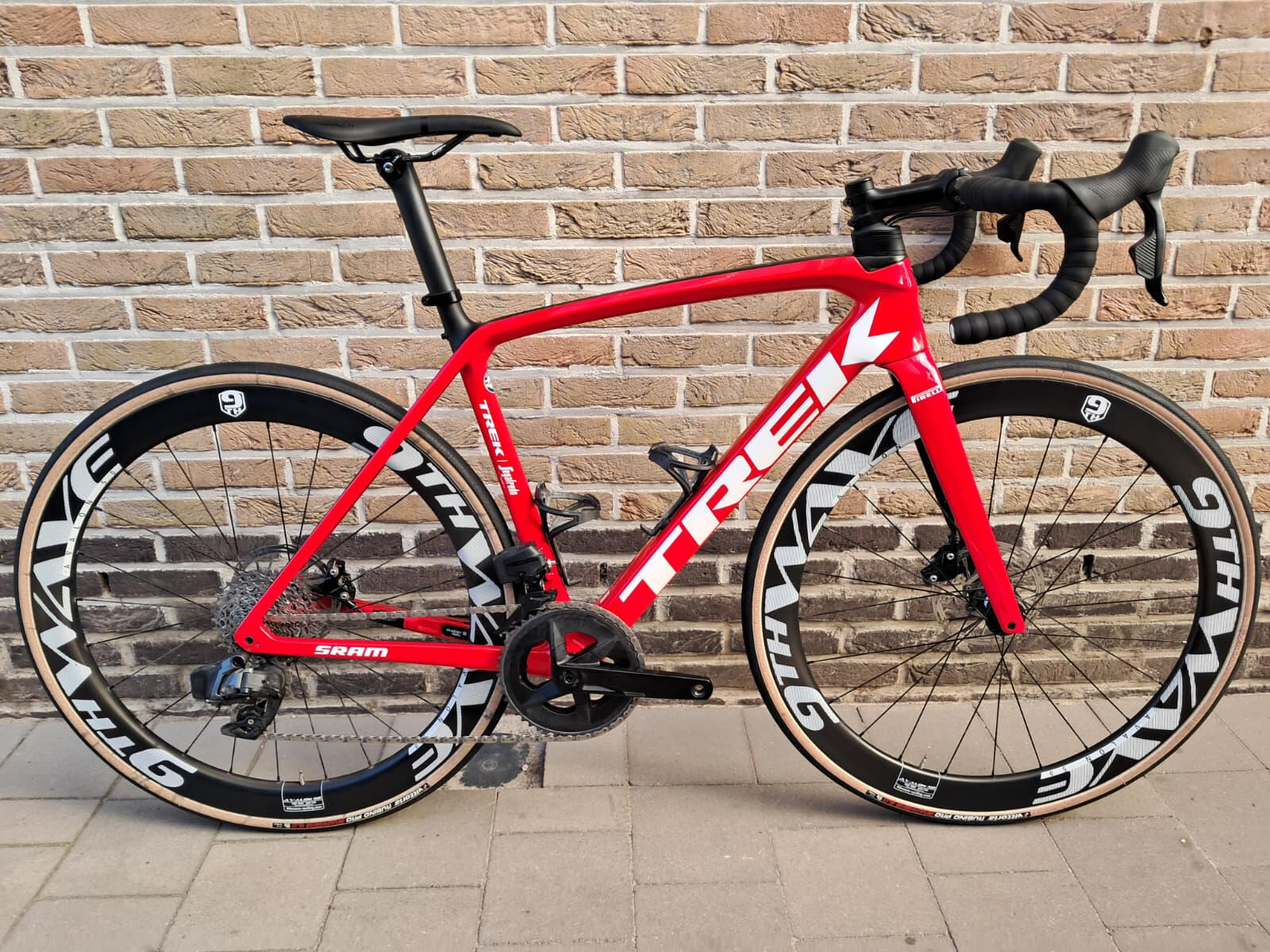 This client bought a frame online and got it custom painted and we discussed and selected every other component together. She wanted to keep her Shimano crank (because it had a power metre), but with a SRAM groupset. I designed a way for those parts to work together smoothly. The gear ratio matches the client’s riding style. Since the client had trouble with shifting because of relatively small hands, we upgraded from manual to electronic shifting to remove discomfort.